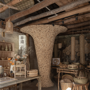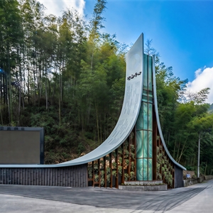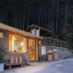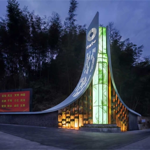 延续乡村文脉,呼应在地文化,与记忆深处的温暖共鸣。以编织为灵感,抽离出竹骨的轻盈架构,交织的光影塑造出独特的地域氛围,体现“编织自然”的在地诗意。