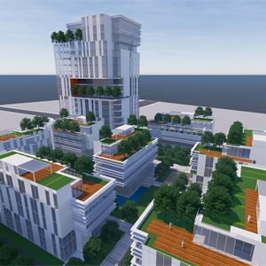 空间开放,动态,互相渗透交融,形成立体的公共空间系统和一个个活力微中心。